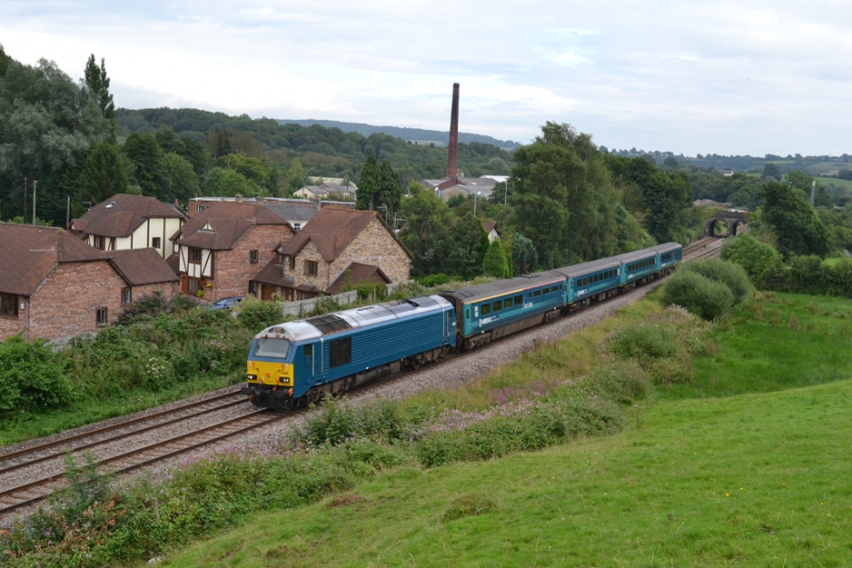 Class 67 diesel locomotive No.67003 works a train up the valley from Newport, seen passing through Ponthir on Wednesday 8th August 2012. Photograph taken by Adrian Booth.
