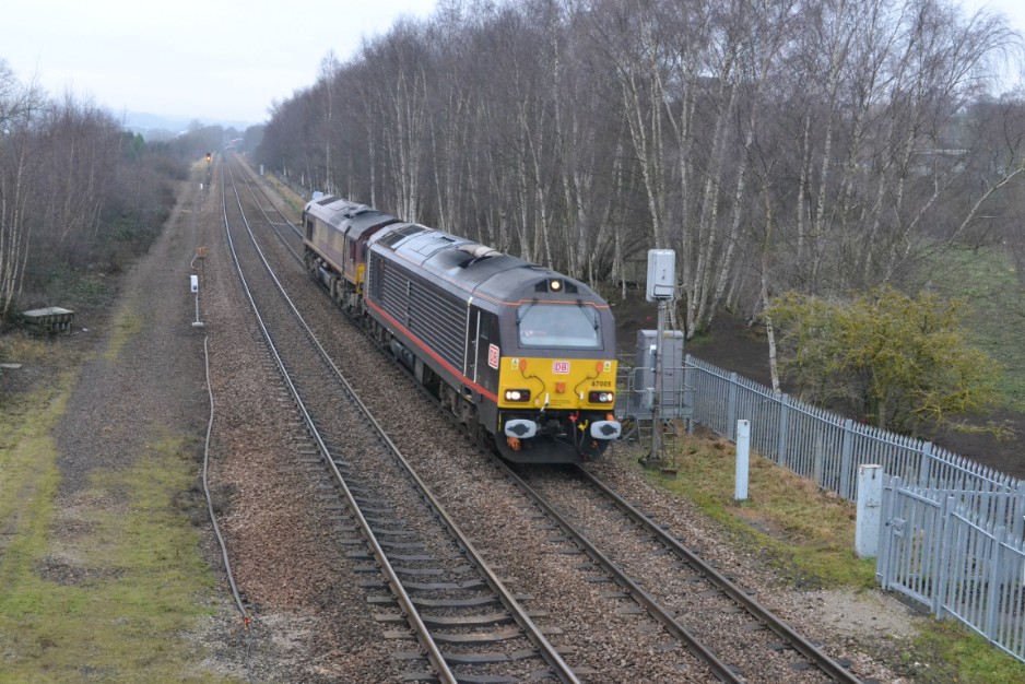 No.67005 (and class 66 diesel locomotive No.66059) at Mexborough on 17th January 2017. Photograph taken by Adrian Booth.