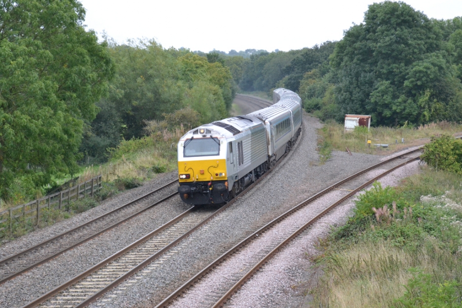 No.67010 at Hatton North Junction on 23rd September 2013. Photograph taken by Adrian Booth.