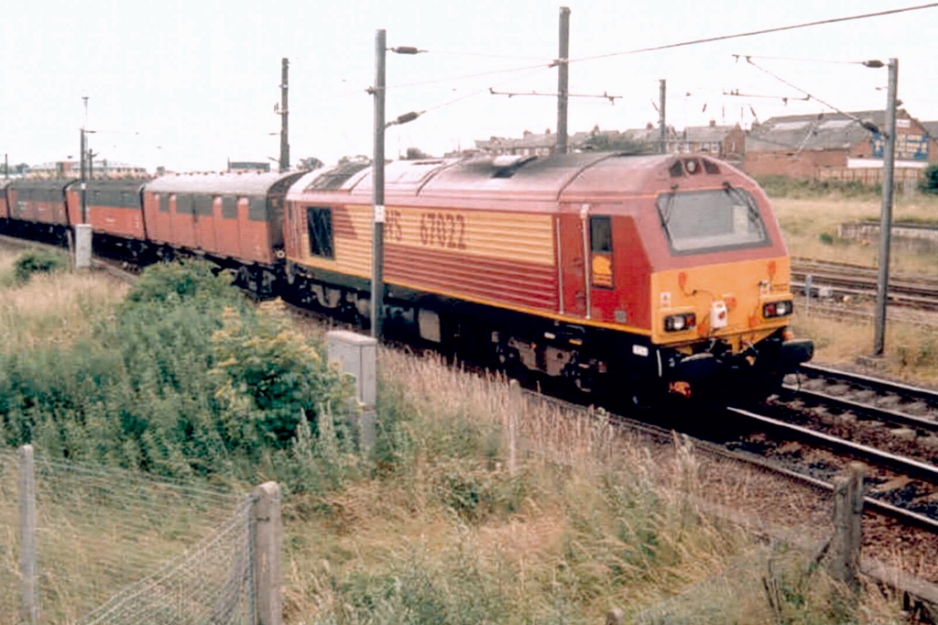 ln 2002 there was a regular mail train working, southbound down the ECML, which was always top-n-tailed. Adrian Booth saw this working at York at 15-44 on 4th July 2002, with 90083 at the front and No.67022 at the rear.