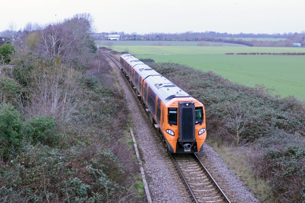 An unusual working took place on Monday 12th January 2026 when class 196 four-car diesel multiple unit No.196105 was sent from Tyseley to Long Marston (10.11, train code 5Q94) presumably for rectification work by Porterbrook. Robert Pritchard photographed it from the bridge over the line at Wyre Piddle on a typical January day.